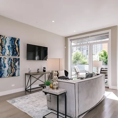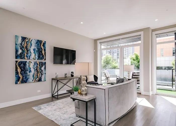 Situated 14 minutes' walk from deep-dish pizza restaurants in Chicago|Chicago-style Pizza|a Chicago-style pizza, 2 Newly Built Luxury Condos With Private Roofdeck Chicago villa invites guests to relax at a patio.